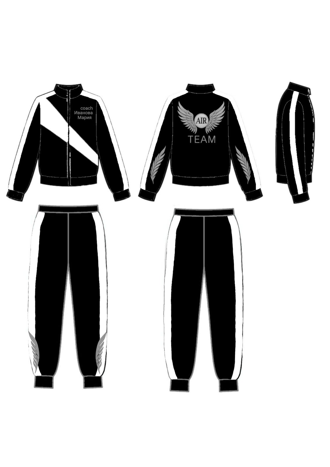 Костюм спортивный командный из футера черно-белый с вышивкой